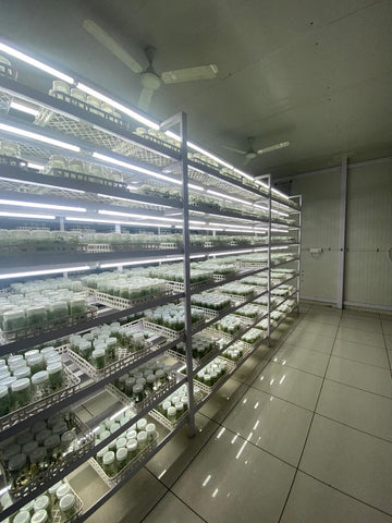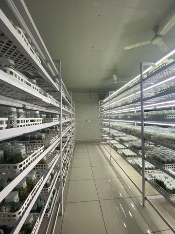 Our state-of-the-art facility spans 4,500 sq. ft., equipped with advanced AI-controlled systems to regulate temperature, humidity, and light, ensuring optimal conditions for cultivation. Designed with cutting-edge, fully sterilized equipment and enclosed within premium PUF walls, our lab guarantees the highest standards of hygiene and efficiency. Managed by a team of highly qualified and experienced professionals, we maintain an impressive annual production capacity of 2 tonnes with unwavering consistency. At our facility, innovation meets precision to produce superior-quality products.
