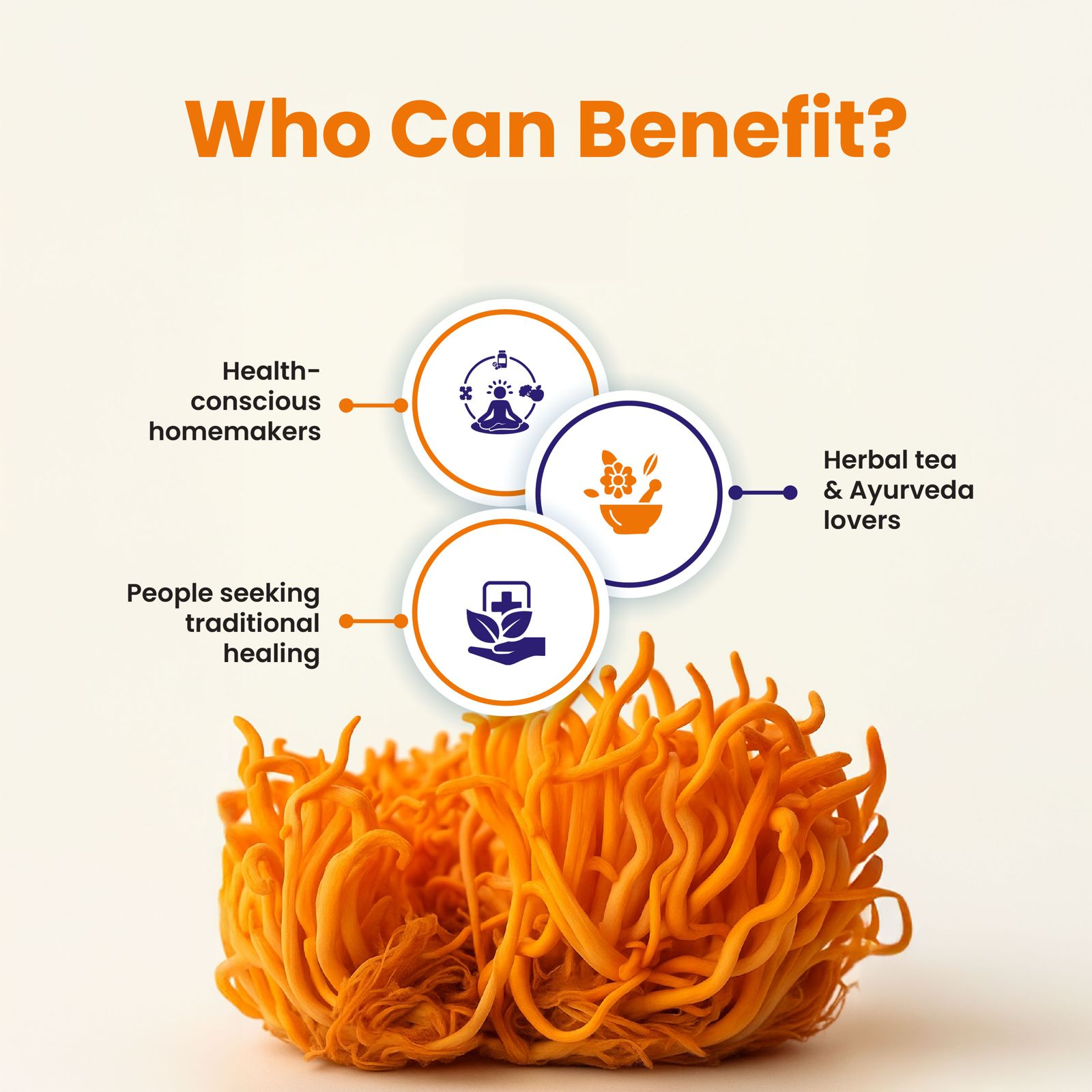 Cordyceps can benefit anyone seeking to improve their overall health, boost energy, or enhance immune system. It is particularly useful for athletes, individuals with active lifestyles, or those looking to combat fatigue.